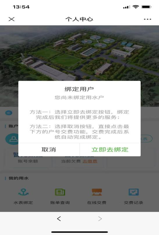 第一步:點擊左下角“我的用水”綁定用戶