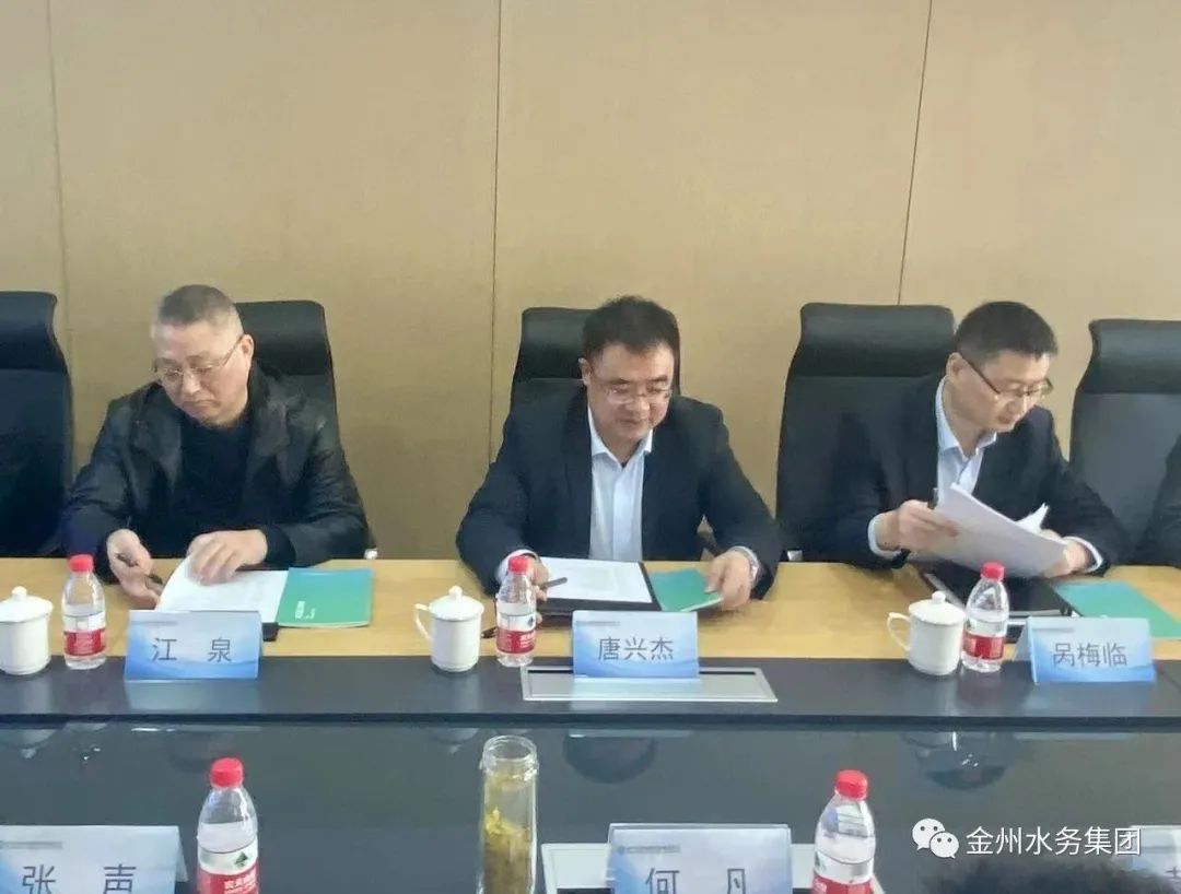 何凡對(duì)唐興杰一行的到來(lái)表示熱烈歡迎,介紹了金州水務(wù)集團(tuán)的股東背景、發(fā)展歷史、業(yè)務(wù)模式以及經(jīng)營(yíng)績(jī)效。他表示,金州水務(wù)在穩(wěn)定既有自來(lái)水和污水處理業(yè)務(wù)的同時(shí),正全力向高科技服務(wù)型企業(yè)轉(zhuǎn)型,致力于城市管網(wǎng)的信息化及智能化業(yè)務(wù),力爭(zhēng)成為該細(xì)分領(lǐng)域的頭部企業(yè)并創(chuàng)業(yè)成功。他希望,在荊門(mén)市政府國(guó)資委及有關(guān)部門(mén)支持下,金州水務(wù)和荊門(mén)城控集團(tuán)、荊門(mén)城市水務(wù)集團(tuán)等市屬?lài)?guó)企應(yīng)加強(qiáng)往來(lái),發(fā)掘合作機(jī)會(huì),攜手共進(jìn),金州水務(wù)將發(fā)揮專(zhuān)業(yè)和資源優(yōu)勢(shì),精準(zhǔn)對(duì)接客戶(hù)需求,提供最優(yōu)方案,助力荊門(mén)城市建設(shè)和城市供水高質(zhì)量發(fā)展。