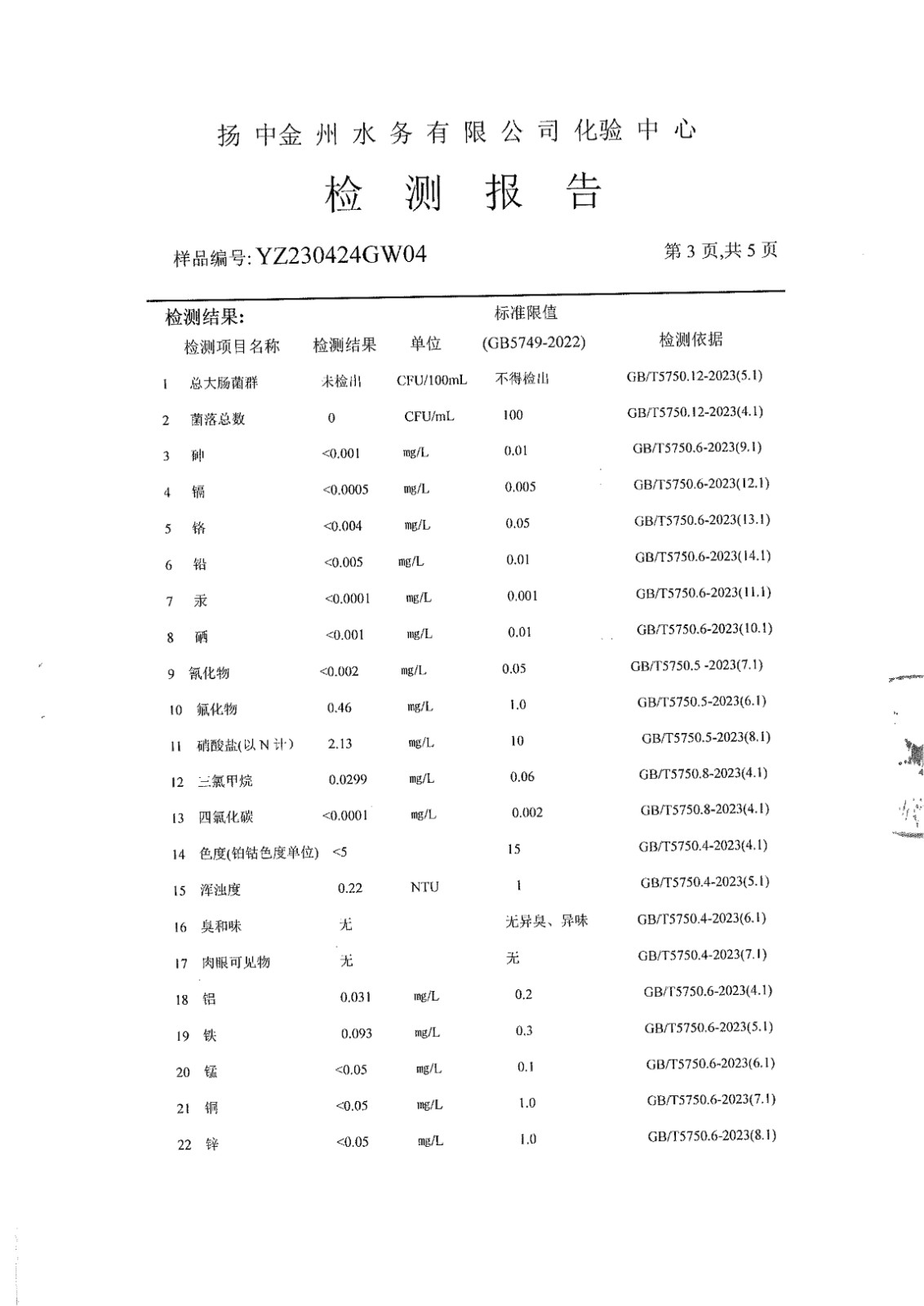水質(zhì)公告